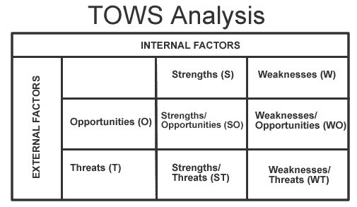 SWOT stands for Strengths, Weaknesses, Opportunities, Threats. It scans your internal and external settings.
